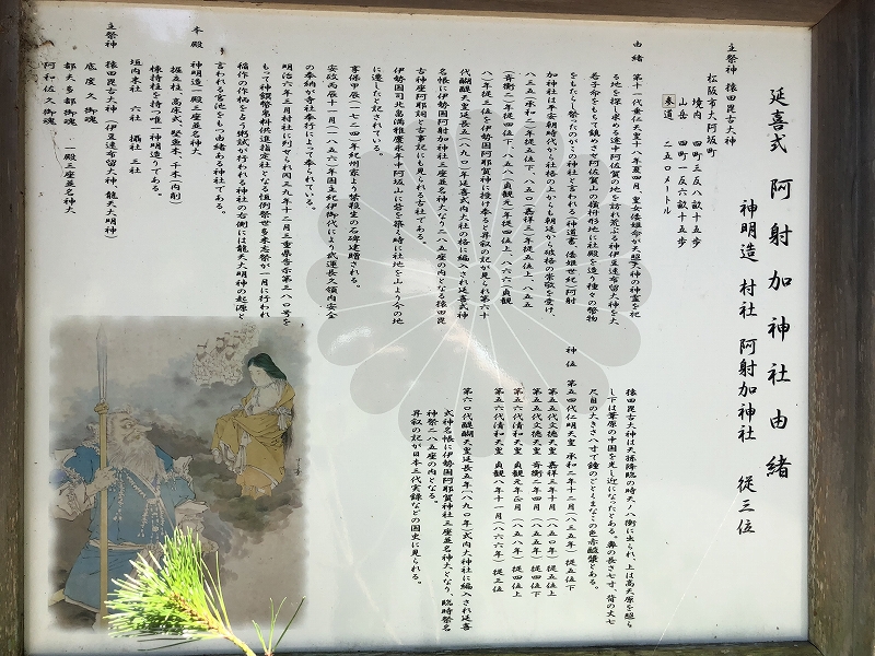後、この神社は伊勢国司北畠満雅が阿坂山に砦を築く時に社地を山から移したのが、阿射加神社(大阿坂)である。