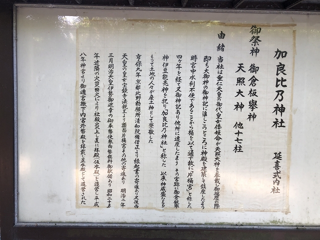 垂仁天皇の御代十八年 己酉、阿佐加の藤方片樋宮(ふじかたかたひのみや)に遷りまして、積(つみて)四箇年を歴(へ)て、斎き奉る。