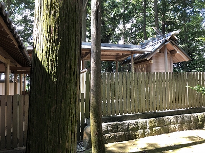 奥に仮宮がある。本宮は立替中である。