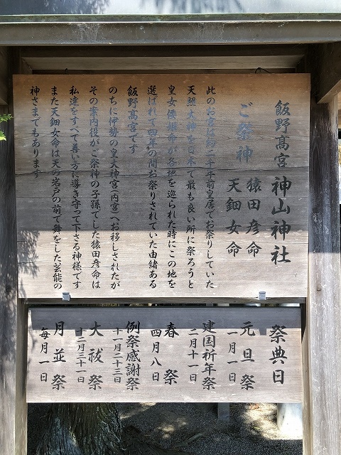 飯野高宮の比定地は前出の「神山(こうやま)神社」と「神戸神館神明社(かんべこうだてしんめいしゃ)」がある。
