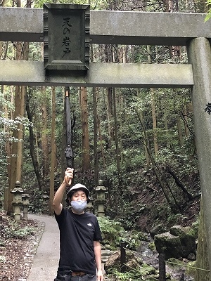 そこから徒歩数分で下写真の天の岩戸の鳥居に辿り着く。