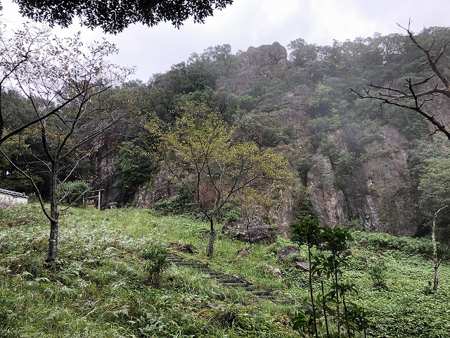 おうむ岩の岸壁はその名の通り、「語り場」にある拍子木の音は「聞き場」で鮮明に聞き取れるのである。