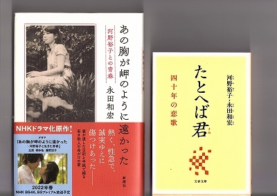 その彼に、最近TVで放送(2022年6月6日)された、「あの胸が岬のように遠かった ~河野裕子と生きた青春」のドラマを見たと伝え、また「たとへば君 四十年の恋歌 河野裕子・永田和宏」の本を彼の前に置いたのである。