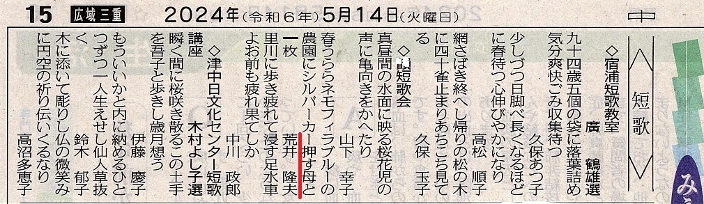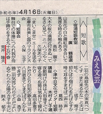新聞掲載第5号(2024年4月24日短歌会 )