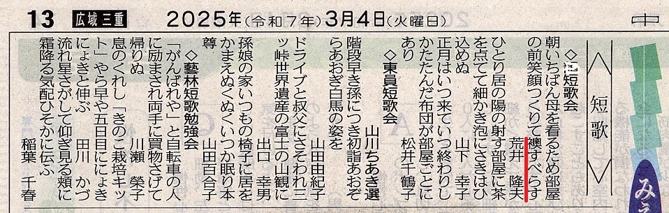 新聞掲載第8号(2025年2月26日短歌会)