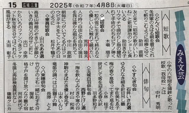 新聞掲載第9号(2025年3月26日短歌会)