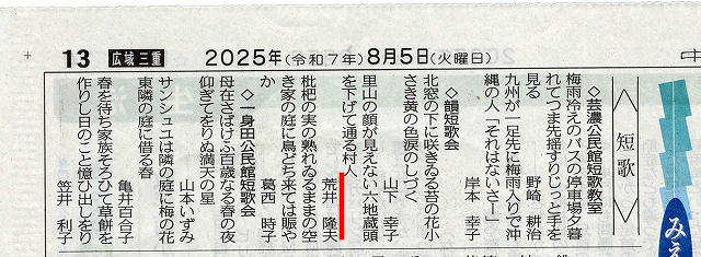 新聞掲載第11号(2025年6月25日短歌会)