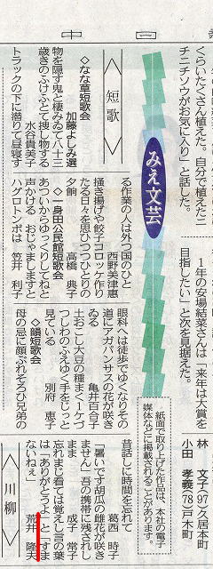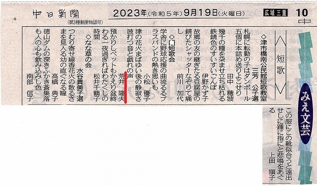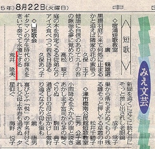 我が短歌会は毎月3首、ある新聞に載せて頂けることになっている。