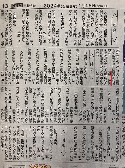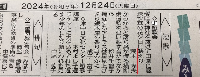 新聞掲載第3号 (2023年12月20日短歌会)