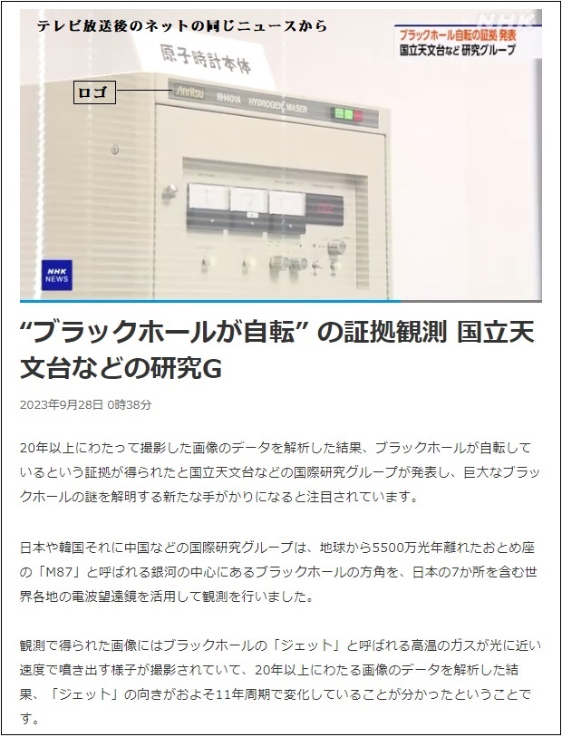 ふとテレビニュースが目に入った。"" ブラックホールが自転しているという証拠が得られたと国立天文台などの国際研究グループが発表 ""ということである。