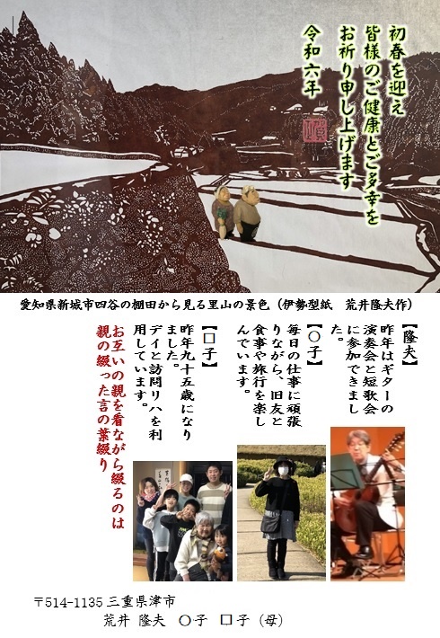 ③令和6年年賀状 愛知県新城市四谷の棚田