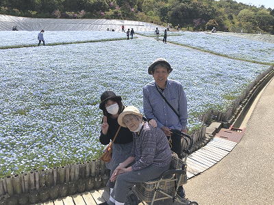 ♬ 春うららネモフィラブルーの農園にシルバーカー押す母と一枚