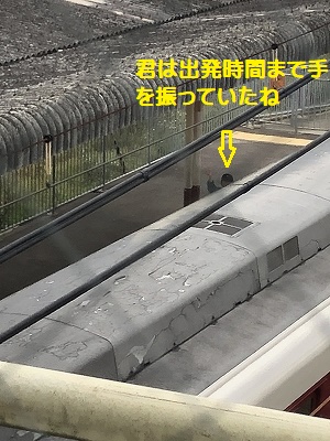 さあ。お別れだ!君は電車が出発する時間まで、じじばばに手を振っていたね。