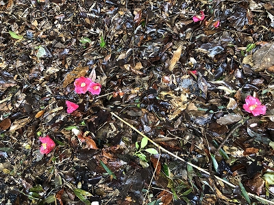 この時期、あちこちに落ち椿が目に付く。