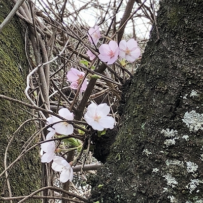 しかし、下の写真の通り満開の桜を楽しみながら、ひばりの鳴き声はどこにもないが、メジロの姿と鳴き声とともに春の訪れを歓迎したのである。