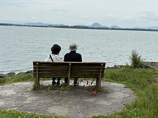 浮御堂前の駐車場で、会ではなく個人でボランティアをしているという高齢者の方が話しかけてきた。