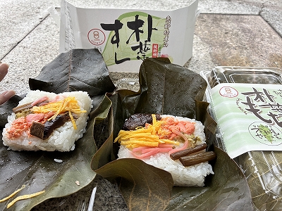 坂折棚田米で作った朴葉寿司を昼食に朴葉もちをお茶うけに、恵那峡の風景を満喫した。