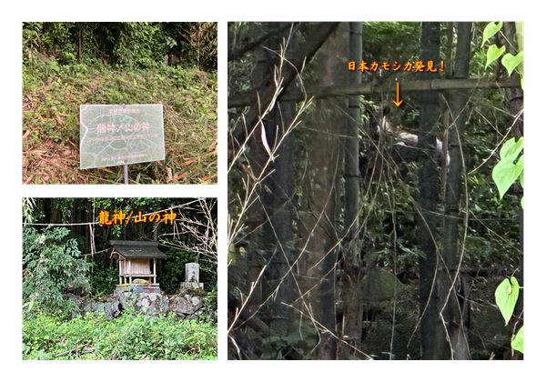 山の神が祭ってあり、その向こう側の森に日本カモシカを発見した。