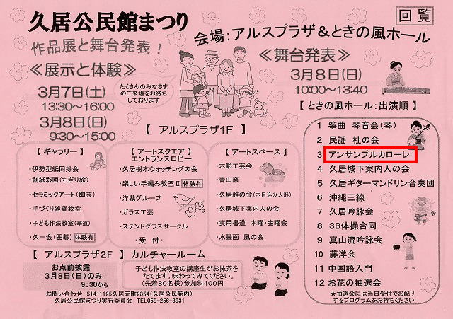2026/03/08(日) 久居公民館まつり アルスプラザ アンサンブル・カローレ