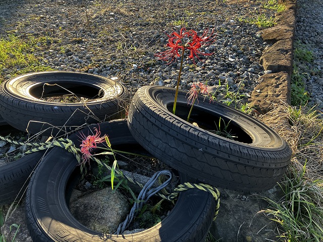 タイヤから曼殊沙華 (2025/10/06/16:30)