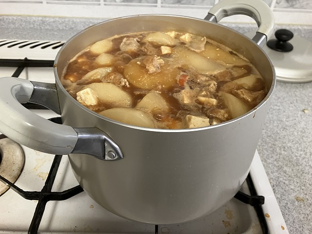 御覧のように大量に作るので、夫婦と母親の3人で4~5日もつので大変助かっているし、しかも自分で言うのもなんだが大変うまいのである。