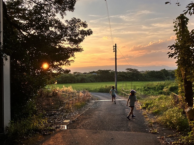 この日は夕日が木々の1点から光り、少女が二人遊んでいた。