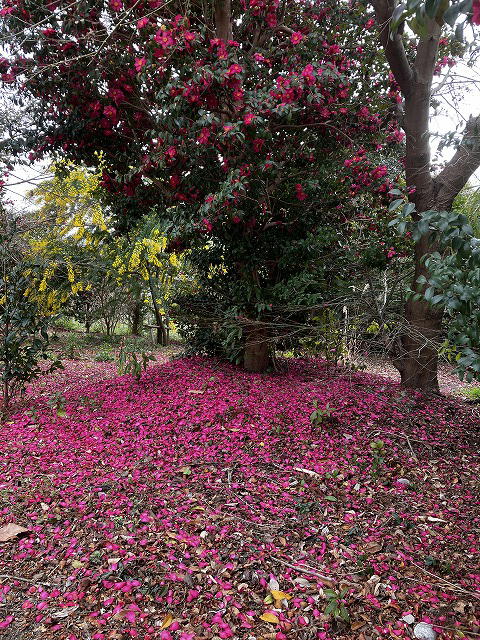 これは! 山茶花の絨毯だ。
