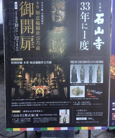 大本山 石山寺では 平成28年3月18日〜12月4日に、33年に1度の日本唯一の勅封秘仏 本尊 如意輪観世音菩薩 御開扉 特別拝観の期間であった。