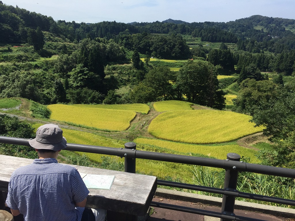 三度目の来訪である。棚田には案山子が作られているのが見える。しばらくすると稲刈りの体験が始まるのだろう。