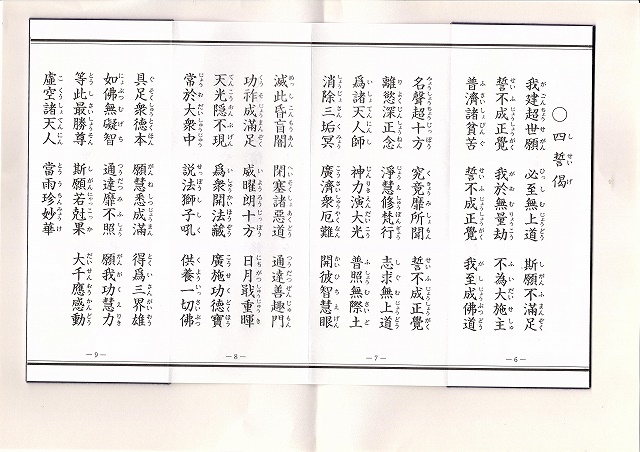 ②浄土宗は仏説無量寿経の四誓偈を唱えるが、今回初めて現代語訳で唱えた。