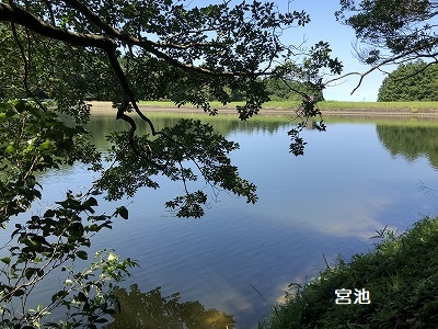 神社の横に龍天大明神の起源と言われる宮池がある。