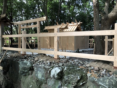 奥に仮宮がある。本宮は立替中である。