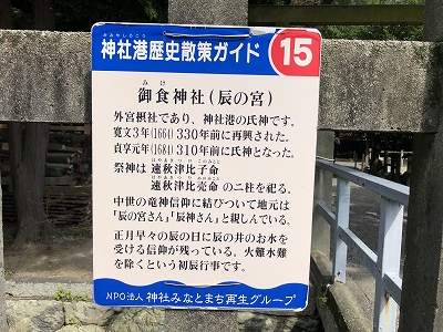 一つは伊勢市神社港の「御食(みけ)神社」でその境内の「辰の井」から湧き出る清らかな水であり、