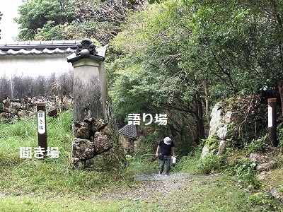 おうむ岩の岸壁はその名の通り、「語り場」にある拍子木の音は「聞き場」で鮮明に聞き取れるのである。