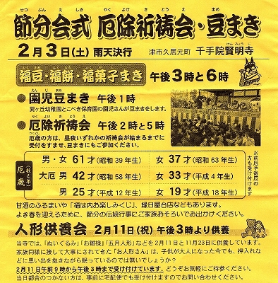 午前中には、津市民文化祭(2/18(日))出場に向けて、アンサンブル・カローレの練習をし、午後3時から久しぶりの節分会に出かけた。